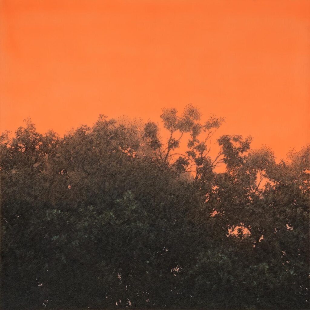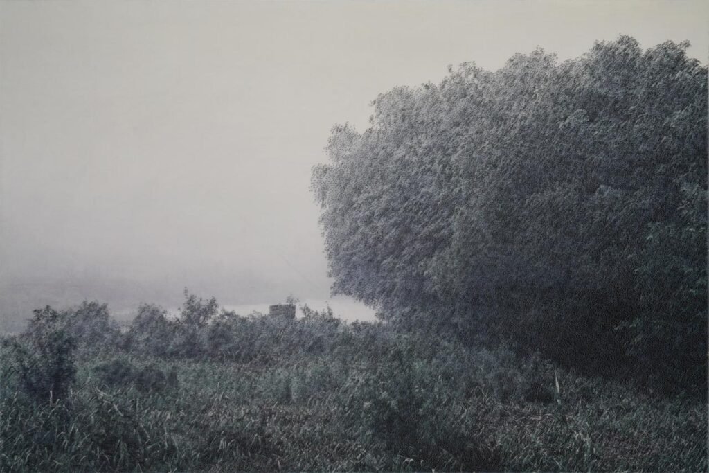 Inspiration for Bongsang Yoo is omnipresent. It may come from the changing colour of the sky, sunlight brushing against leaves, urban fire escapes, fleeting gestures, or intimate everyday moments. Nature is not treated as a singular subject but as one of many sources of atmosphere. While certain bodies of work may focus on specific environments, his practice remains open—responding to whatever visual tension or quiet pull captures his attention in the moment.